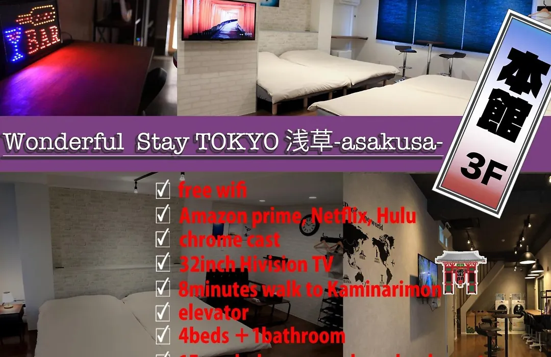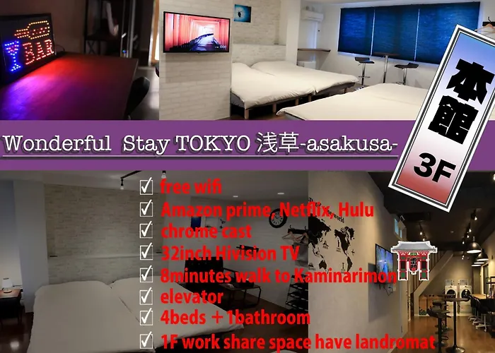 Located nearly 25 minutes' walk from the historical Edo-Tokyo Museum, the 3-star Wonderfulstaytokyo Asakusa - Vacation Stay 68456V hotel offers a lift and a vending machine. The surrounding area includes the Kaminarimon Street and Tawaramachi tube station right around the corner from this Tokyo guest house.